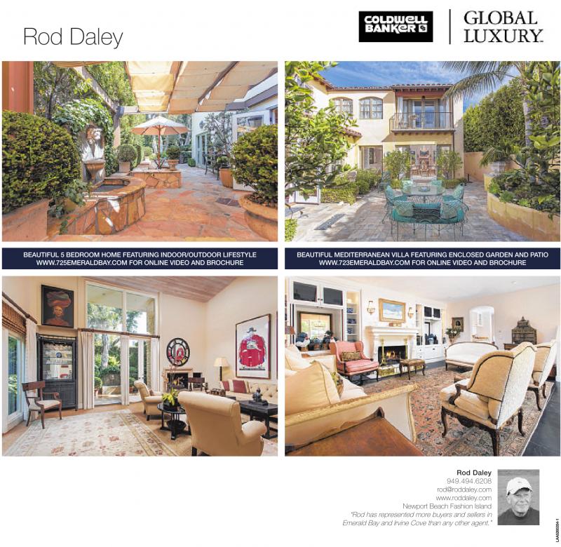 Rod Daley BEAUTIFUL 5 BEDROOM HOME FEATURING INDOOR/OUTDOOR LIFESTYLE WWW.725EMERALDBAY.COM FOR ONLINE VIDEO AND BROCHURE BEAUTIFUL MEDITERRANEAN VILLA FEATURING ENCLOSED GARDEN AND PATIO WWW.723EMERALDBAY.COM FOR ONLINE VIDEO AND BROCHURE Rod Daley 949.494.6208 rod@roddaley.com www.roddaley.com Newport Beach Fashion Island “Rod has represented more buyers and sellers in Emerald Bay and Irvine Cove than any other agent.”