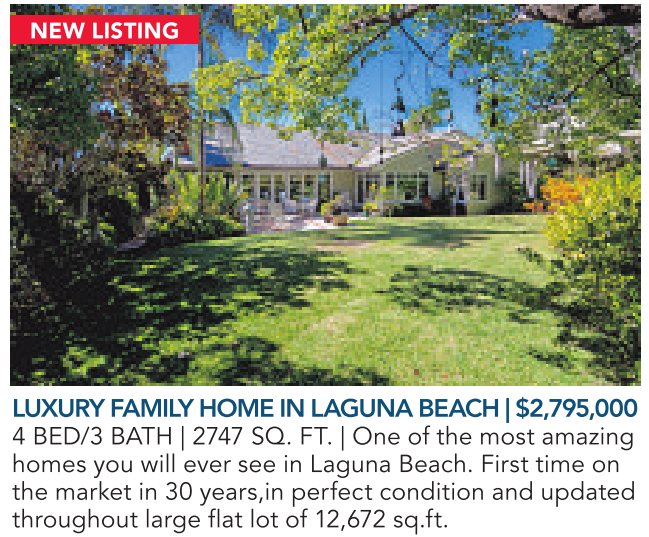 NEW LISTING LUXURY FAMILYHOME IN LAGUNA BEACH|$2,795,000 4 BED/3 BATH | 2747 SQ. FT. | One of the most amazing homes you will ever see in Laguna Beach. First time on the market in 30 years,in perfect condition and updated throughout large flat lot of 12,672 sq.ft.