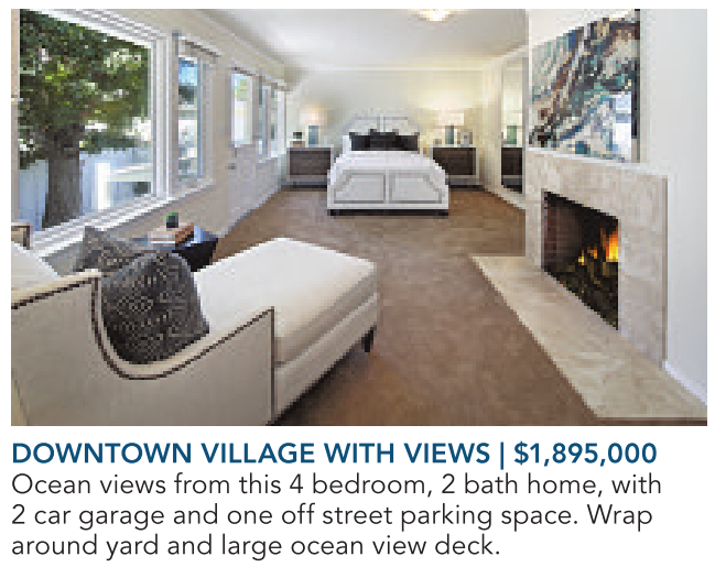DOWNTOWN VILLAGE WITH VIEWS | $1,895,000 Ocean views from this 4 bedroom, 2 bath home, with 2 car garage and one off street parking space. Wrap around yard and large ocean view deck.