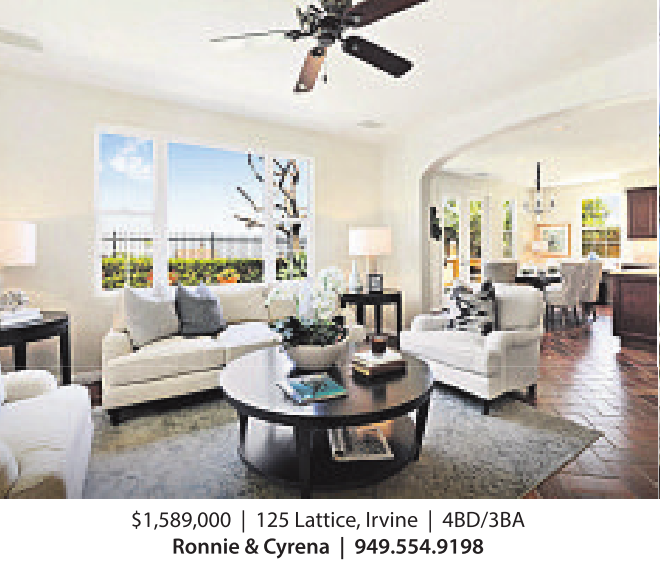 $1,589,000 | 125 Lattice, Irvine | 4BD/3BA Ronnie &Cyrena | 949.