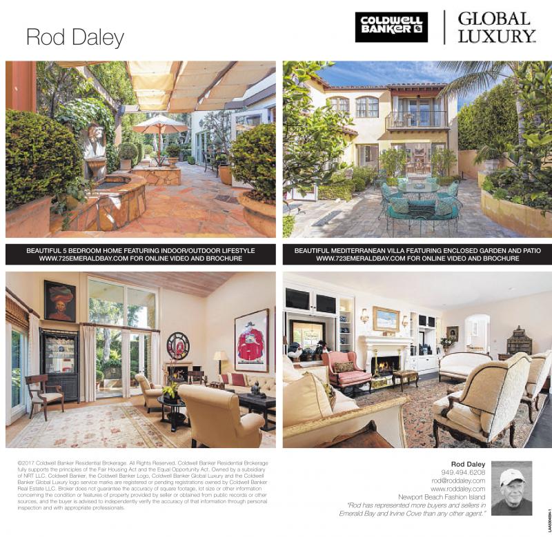 Rod Daley BEAUTIFUL 5 BEDROOM HOME FEATURING INDOOR/OUTDOOR LIFESTYLE WWW.725EMERALDBAY.COM FOR ONLINE VIDEO AND BROCHURE ©2017 Coldwell Banker Residential Brokerage. All Rights Reserved. Coldwell Banker Residential Brokerage fully supports the principles of the Fair Housing Act and the Equal Opportunity Act. Owned by a subsidiary of NRT LLC. Coldwell Banker, the Coldwell Banker Logo, Coldwell Banker Global Luxury and the Coldwell Banker Global Luxury logo service marks are registered or pending registrations owned by Coldwell Banker Real Estate LLC. Broker does not guarantee the accuracy of square footage, lot size or other information concerning the condition or features of property provided by seller or obtained from public records or other sources, and the buyer is advised to independently verify the accuracy of that information through personal inspection and with appropriate professionals. BEAUTIFUL MEDITERRANEAN VILLA FEATURING ENCLOSED GARDEN AND PATIO WWW.723EMERALDBAY.COM FOR ONLINE VIDEO AND BROCHURE Rod Daley 949.494.6208 rod@roddaley.com www.roddaley.com Newport Beach Fashion Island “Rod has represented more buyers and sellers in Emerald Bay and Irvine Cove than any other agent.”