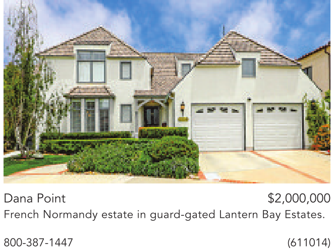 Dana Point $2,000,000 French Normandy estate in guard-gated Lantern Bay Estates.