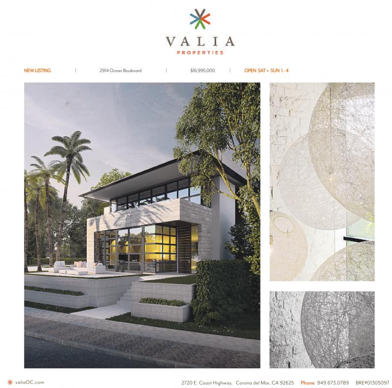 valiaOC.com 2720 E. Coast Highway, Corona del Mar, CA 92625 Phone 949.673.0789 BRE#01305097