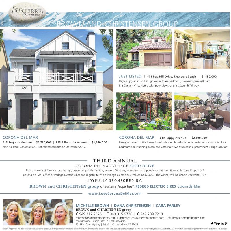 MICHELLE BROWN | DANA CHRISTENSEN | CARA FARLEY BROWN and CHRISTENSEN group C 949.212.2576 | C 949.315.9720 | C 949.209.7218 mbrown@surterreproperties.com | dchristensen@surterreproperties.com | cfarley@surterreproperties.com