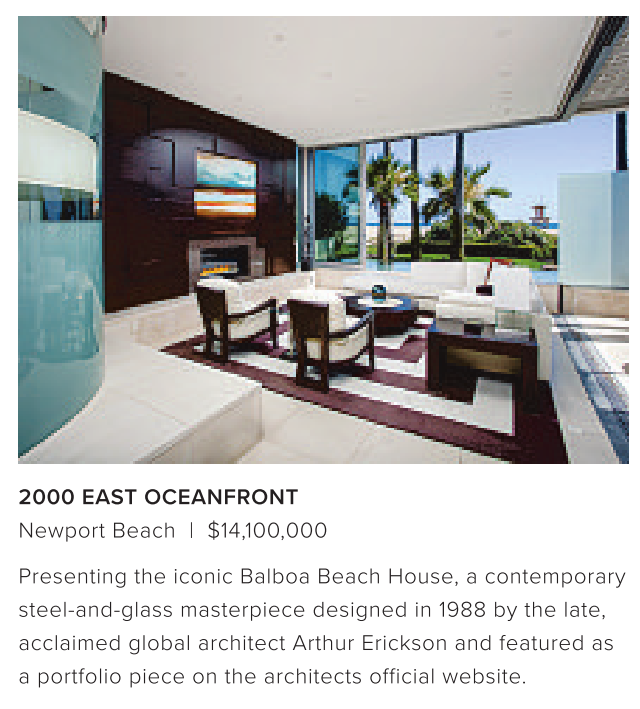 2000 EAST OCEANFRONT Newport Beach | $14,100,000 Presenting the iconic Balboa Beach House, a contemporary steel-and-glass masterpiece designed in 1988 by the late, acclaimed global architect Arthur Erickson and featured as a portfolio piece on the architects official website.