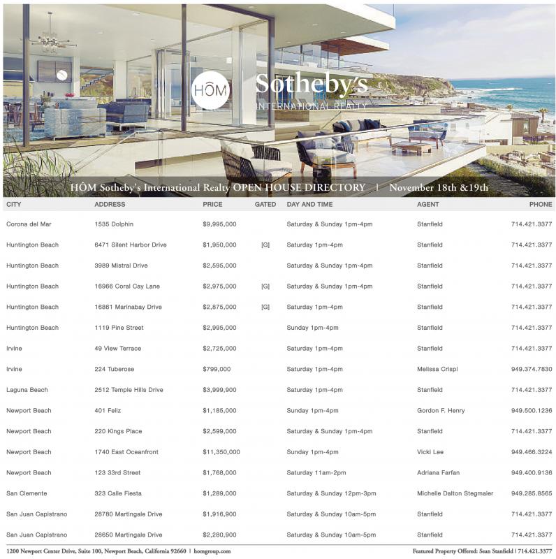 HÔM Sotheby's International Realty OPEN HOUSE DIRECTORY | November 18th &19th
