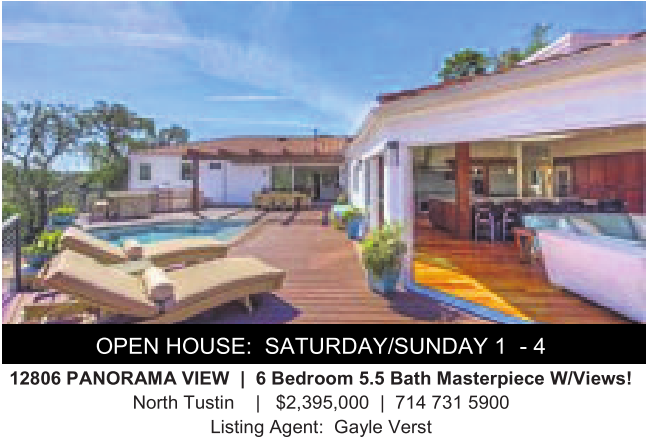 North Tustin | $2,395,000 | 714 731 5900 Listing Agent: Gayle Verst