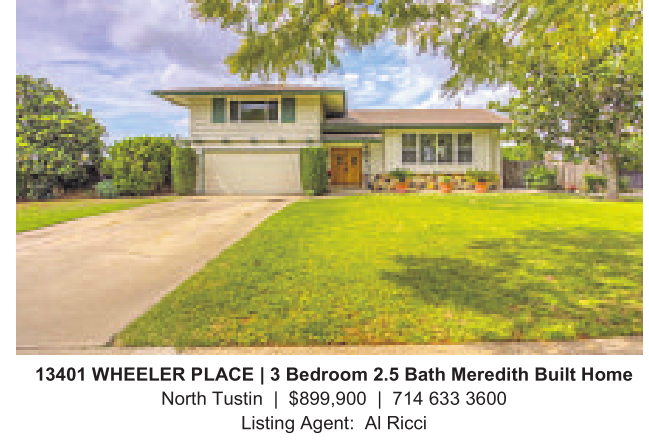 13401 WHEELER PLACE |3Bedroom 2.5 Bath Meredith Built Home North Tustin | $899,900 | 714 633 3600 Listing Agent: AlRicci