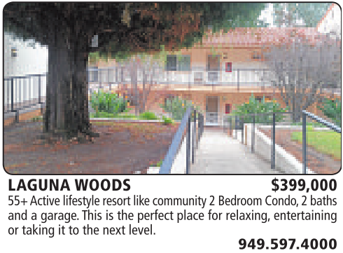 LAGUNA WOODS $399,000 55+ Active lifestyle resort likecommunity2BedroomCondo, 2baths and agarage.Thisisthe perfect place for relaxing, entertaining or taking it to the next level.