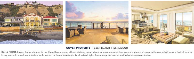 COVER PROPERTY | 35611 BEACH | $5,495,000 DANA POINT: Luxury home situated in the Capo Beach strand affords striking ocean views, an open concept floor plan and plenty of space with over 4,000 square feet of interior living space, five bedrooms and six bathrooms. The house boasts plenty of natural light, illuminating the neutral and welcoming spaces inside.