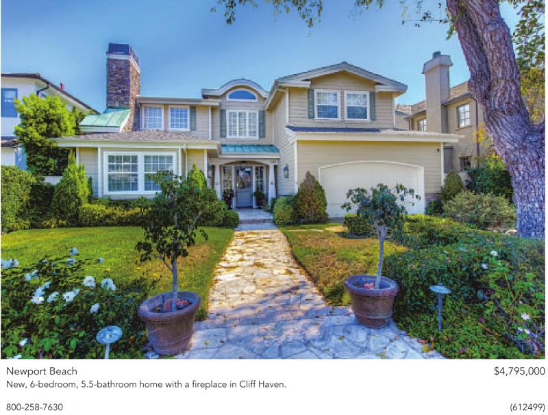 Newport Beach $4,795,000 New, 6-bedroom, 5.5-bathroom home with a fireplace in Cliff Haven.