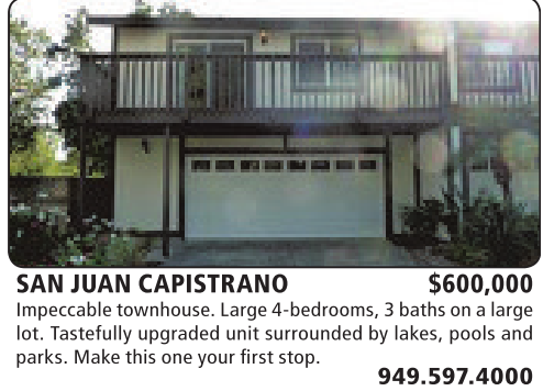 SAN JUAN CAPISTRANO $600,000 Impeccable townhouse. Large 4-bedrooms,3baths on alarge
