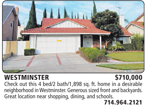 WESTMINSTER $710,000 Check out this 4bed/2 bath/1,898 sq. ft. home in adesirable neighborhood in Westminster.Generous sized front and backyards. Great location near shopping, dining, and schools.