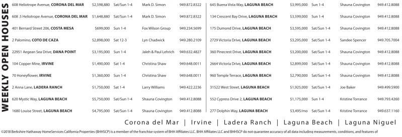 1680 Louise Street, LAGUNA BEACH $4,795,000 Sat/Sun 1-4 Shauna Covington 949.412.8088