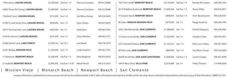 | Mission Viejo | Monarch Beach | Newpor t Beach | San Clemente