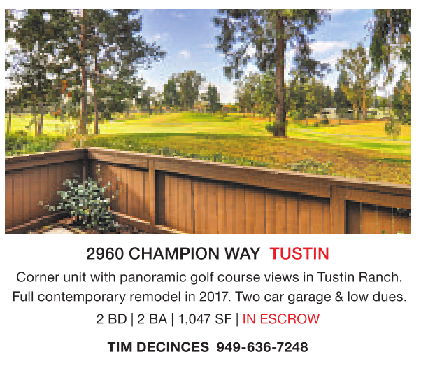2960 CHAMPION WAY TUSTIN Corner unit with panoramic golf course views in Tustin Ranch.