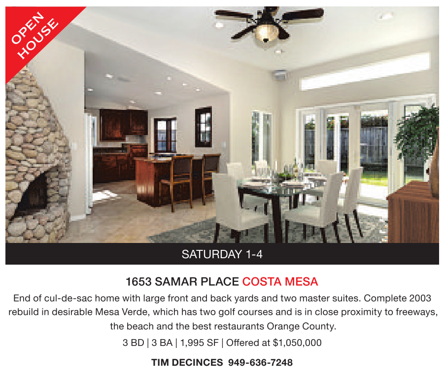 3BD|3BA |1,995 SF |Offered at$1,050,000 TIM DECINCES 949-636-7248