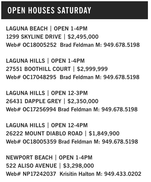 LAGUNA HILLS | OPEN 12-4PM 26222 MOUNT DIABLO ROAD | $1,849,900 Web# OC18005359 Brad Feldman M: 949.678.5198