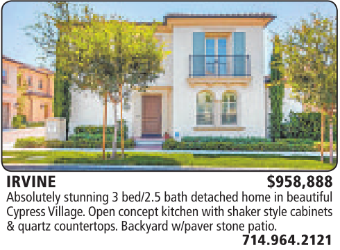 IRVINE $958,888 Absolutely stunning 3bed/2.5 bath detached home in beautiful Cypress Village.Openconceptkitchen with shaker style cabinets &quartz countertops.Backyard w/paver stone patio.