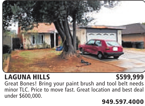 LAGUNA HILLS $599,999 Great Bones! Bring your paint brush and tool belt needs minorTLC. Price to move fast. Great location and best deal under $600,000.
