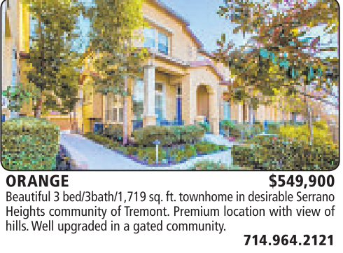 ORANGE $549,900 Beautiful3bed/3bath/1,719 sq.ft. townhome in desirableSerrano Heights community of Tremont.Premium location with view of hills.Well upgraded in agated community.
