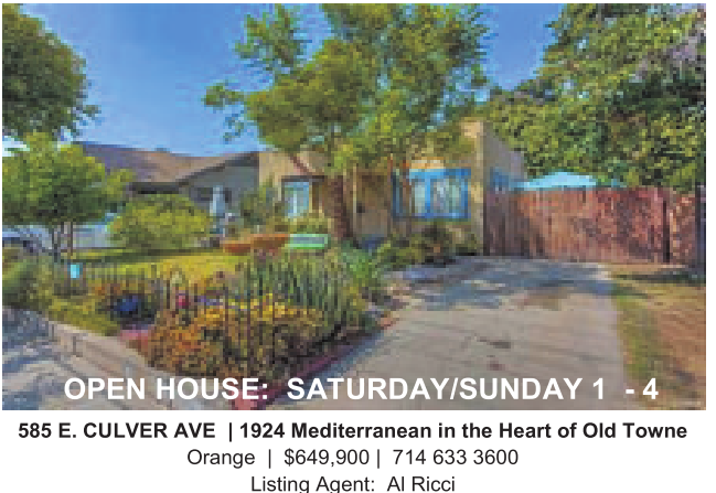 585 E. CULVER AVE | 1924 Mediterranean in the Heart of Old Towne Orange | $649,900 | 714 633 3600 Listing Agent: AlRicci