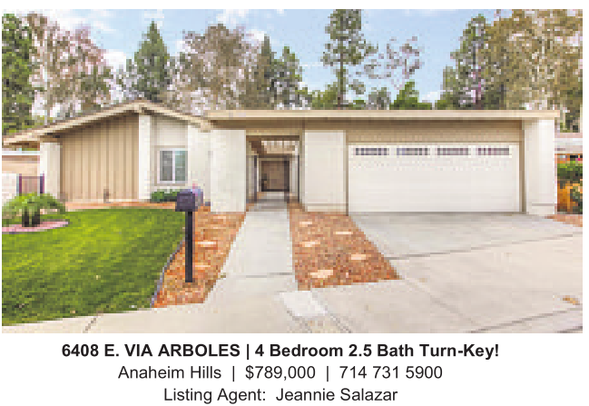 Anaheim Hills | $789,000 | 714 731 5900 Listing Agent: Jeannie Salazar