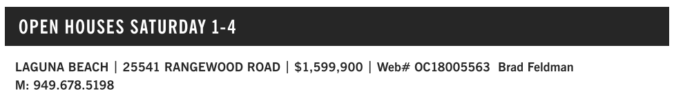 LAGUNA BEACH | 25541 RANGEWOOD ROAD | $1,599,900 | Web# OC18005563 Brad Feldman M: 949.678.5198