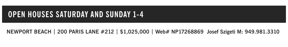 NEWPORT BEACH | 200 PARIS LANE #212 | $1,025,000 | Web# NP17268869 Josef Szigeti M: 949.981.3310