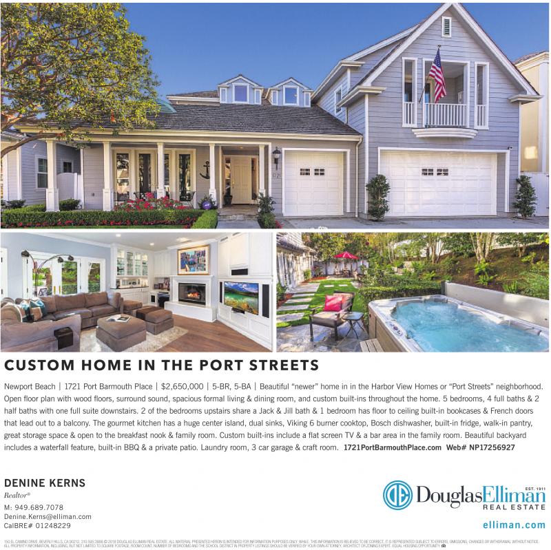 Newport Beach | 1721 Port Barmouth Place | $2,650,000 | 5-BR, 5-BA | Beautiful “newer” home in in the Harbor View Homes or “Port Streets” neighborhood.