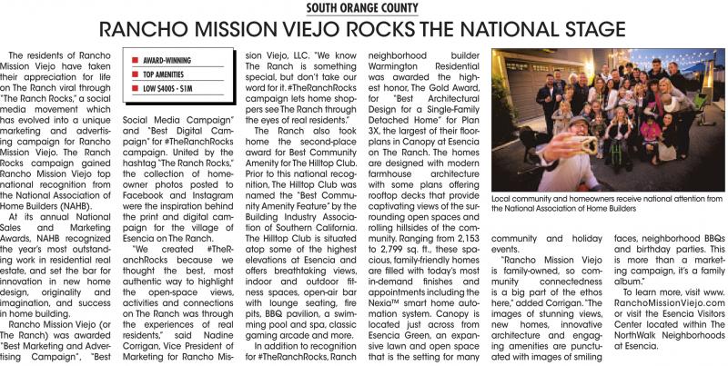 The residents of Rancho Mission Viejo have taken their appreciation for life on The Ranch viral through “The Ranch Rocks,” a social media movement which has evolved into a unique marketing and advertising campaign for Rancho Mission Viejo. The Ranch Rocks campaign gained Rancho Mission Viejo top national recognition from the National Association of Home Builders (NAHB).