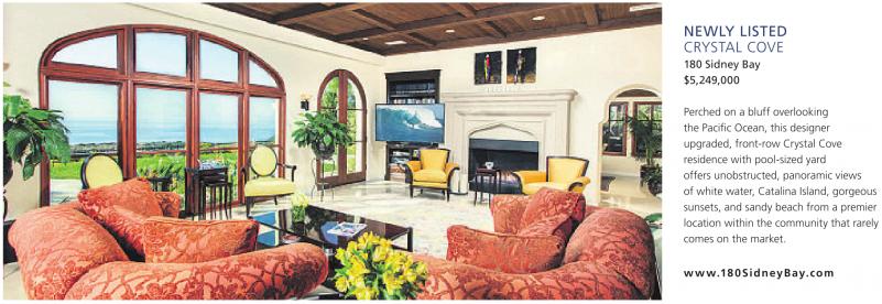 Perched on a bluff overlooking the Pacific Ocean, this designer upgraded, front-row Crystal Cove residence with pool-sized yard offers unobstructed, panoramic views of white water, Catalina Island, gorgeous sunsets, and sandy beach from a premier location within the community that rarely comes on the market.