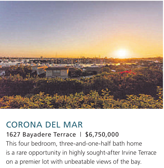1627 Bayadere Terrace | $6,750,000 This four bedroom, three-and-one-half bath home is a rare opportunity in highly sought-after Irvine Terrace on a premier lot with unbeatable views of the bay.