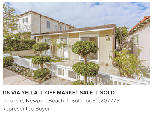 116 VIA YELLA | OFF MARKET SALE | SOLD Lido Isle, Newport Beach | Sold for $2,207,775 Represented Buyer