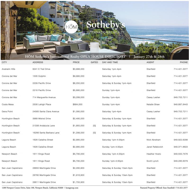 HÔM Sotheby's International Realty OPEN HOUSE DIRECTORY | January 27th & 28th