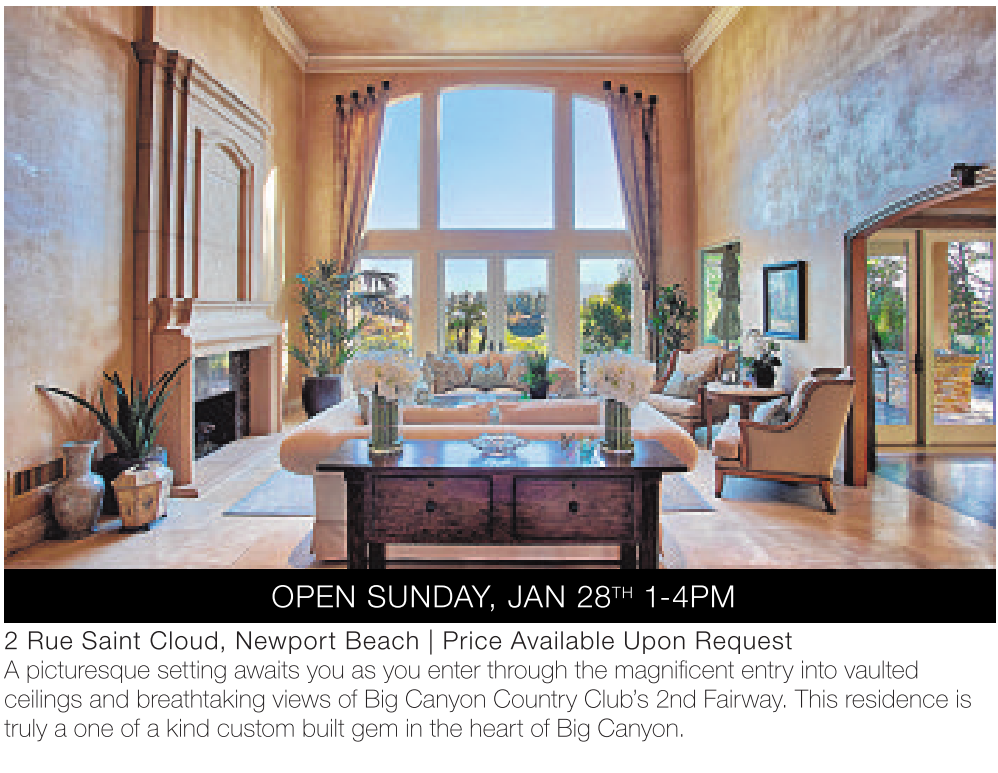 2 Rue Saint Cloud, Newport Beach | Price Available Upon Request A picturesque setting awaits you as you enter through the magnificent entry into vaulted ceilings and breathtaking views of Big Canyon Country Club’s 2nd Fairway. This residence is truly a one of a kind custom built gem in the heart of Big Canyon.