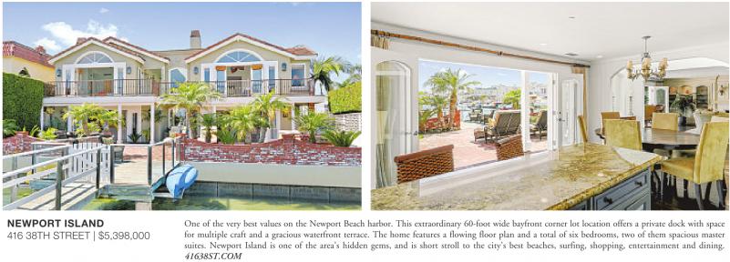 One of the very best values on the Newport Beach harbor. This extraordinary 60-foot wide bayfront corner lot location offers a private dock with space for multiple craft and a gracious waterfront terrace. The home features a flowing floor plan and a total of six bedrooms, two of them spacious master suites. Newport Island is one of the area’s hidden gems, and is short stroll to the city’s best beaches, surfing, shopping, entertainment and dining. 41638ST.COM