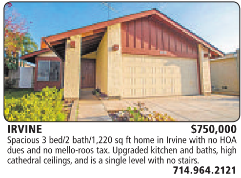 IRVINE $750,000 Spacious 3bed/2 bath/1,220 sq ft home in Irvine with no HOA dues and no mello-roos tax. Upgraded kitchen and baths,high cathedral ceilings,and is asingle level with no stairs.