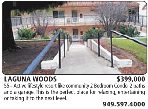 LAGUNA WOODS $399,000 55+ Active lifestyle resort likecommunity2BedroomCondo, 2baths and agarage.Thisisthe perfect place for relaxing, entertaining or taking it to the next level.