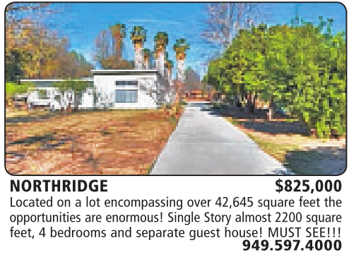 NORTHRIDGE $825,000 Located on a lot encompassing over 42,645 square feet the opportunities are enormous! Single Story almost 2200 square feet, 4 bedrooms and separate guest house! MUST SEE!!!