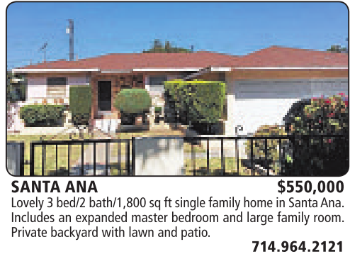 SANTA ANA $550,000 Lovely3bed/2 bath/1,800sqftsingle familyhomeinSantaAna. Includes an expanded master bedroom and large family room. Private backyard with lawn and patio.