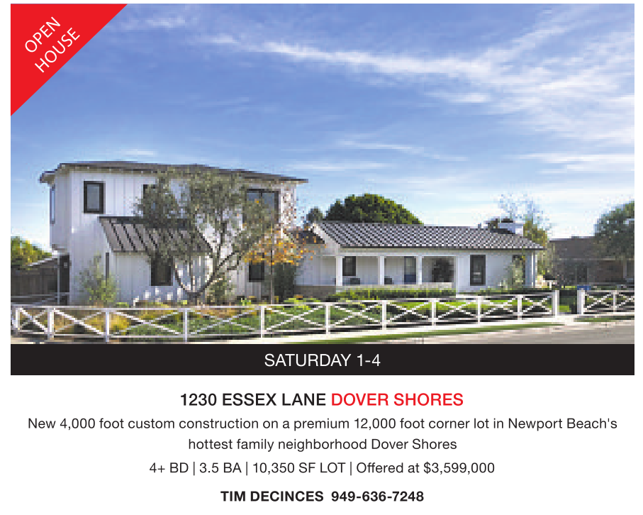 New 4,000 foot custom construction on apremium 12,000 foot corner lot in Newport Beach's