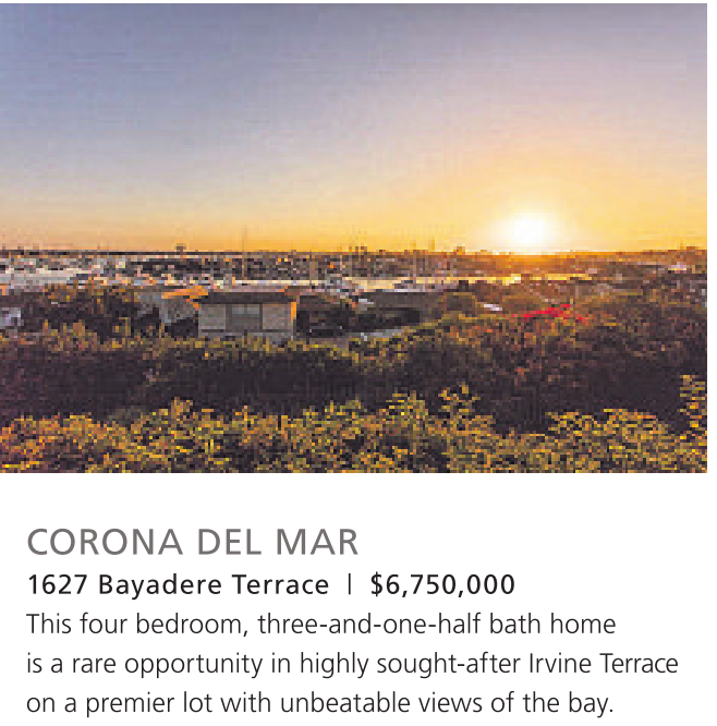 1627 Bayadere Terrace | $6,750,000 This four bedroom, three-and-one-half bath home is a rare opportunity in highly sought-after Irvine Terrace on a premier lot with unbeatable views of the bay.