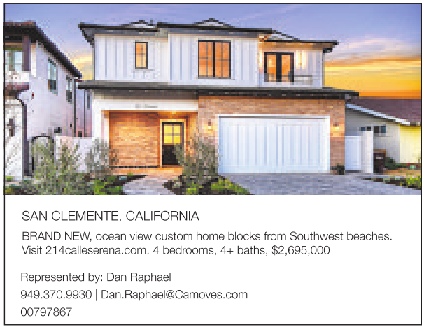 SAN CLEMENTE, CALIFORNIA BRAND NEW, ocean view custom home blocks from Southwest beaches. Visit 214calleserena.com. 4bedrooms, 4+ baths, $2,695,000