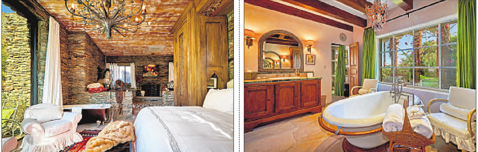 The master suite lies in a separate wing and comprises multiple rooms. Including a two-bedroom casita, there are six bedrooms and 7.5 bathrooms.