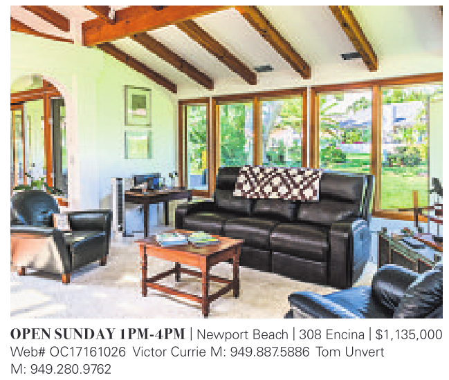 OPEN SUNDAY 1PM-4PM | Newport Beach | 308 Encina | $1,135,000 Web# OC17161026 Victor Currie M: 949.887.5886 TomUnvert M: 949.280.9762