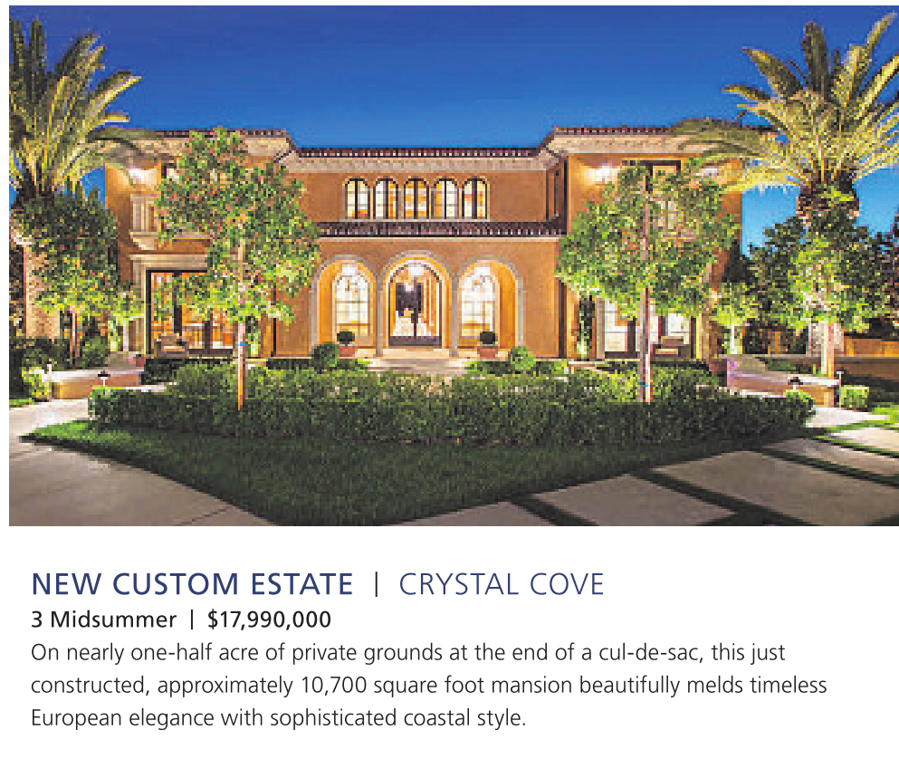 3 Midsummer | $17,990,000 On nearly one-half acre of private grounds at the end of a cul-de-sac, this just constructed, approximately 10,700 square foot mansion beautifully melds timeless European elegance with sophisticated coastal style.