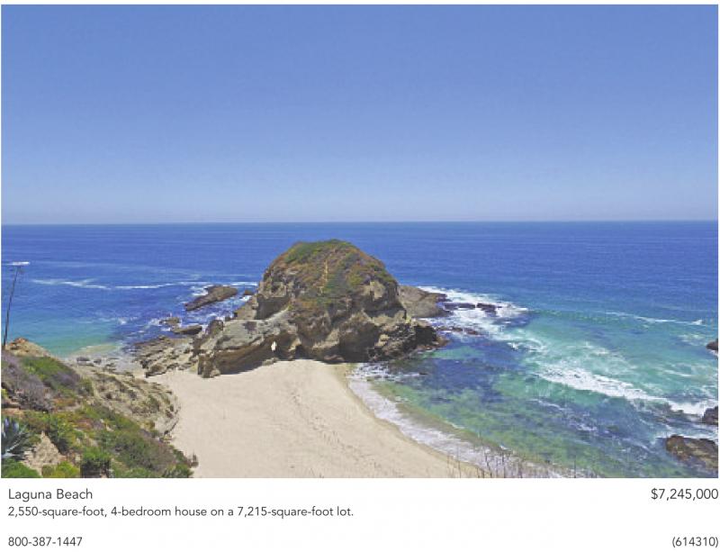 Laguna Beach $7,245,000 2,550-square-foot, 4-bedroom house on a 7,215-square-foot lot.