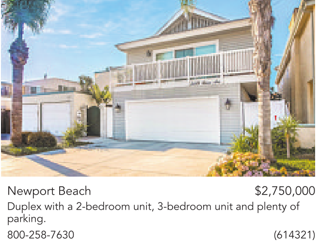 Newport Beach $2,750,000 Duplex with a 2-bedroom unit, 3-bedroom unit and plenty of parking.