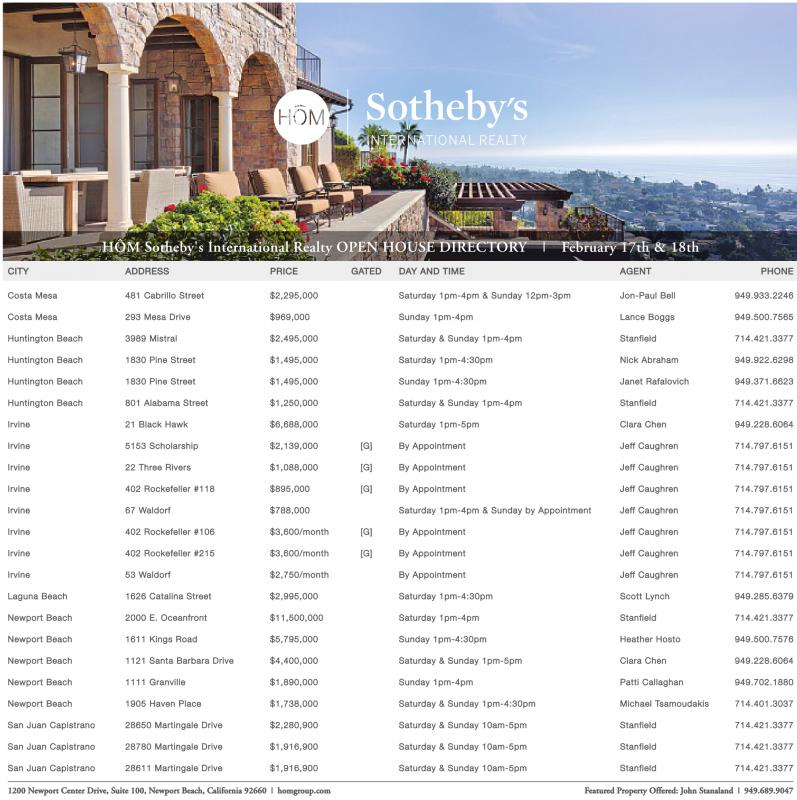 HÔM Sotheby's International Realty OPEN HOUSE DIRECTORY | February 17th & 18th